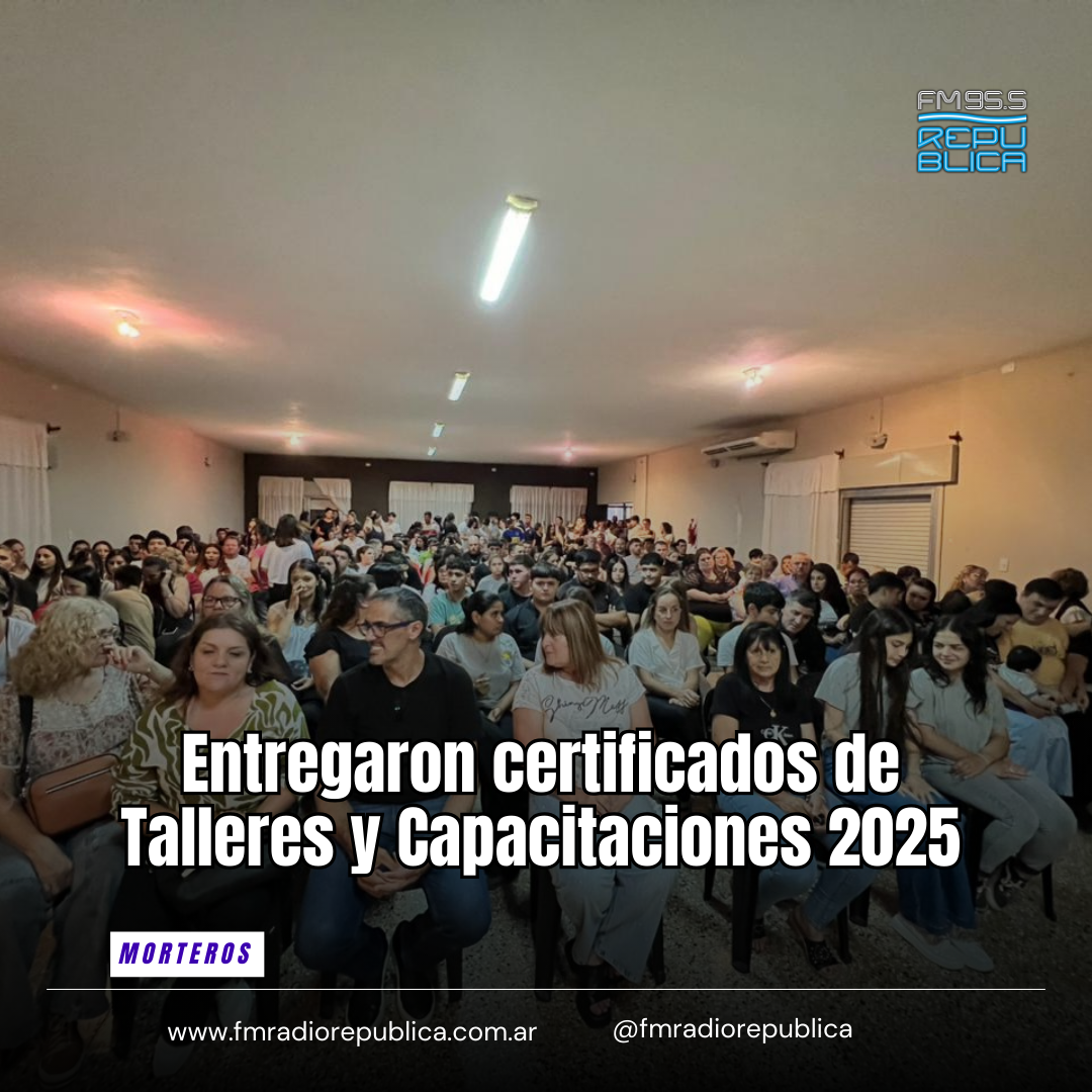 10/12/2025 - La Municipalidad de Morteros llevó adelante la entrega de certificados de los talleres, cursos y capacitaciones desarrollados durante el año 2025. Estas propuestas formativas —muchas de ellas en articulación con el CEDER— estuvieron orientadas a fortalecer habilidades personales y profesionales, y a ampliar las oportunidades de inserción laboral en nuestra ciudad. En total, cerca de 400 participantes completaron su proceso de formación en distintas áreas y recibieron la certificación que acredita los conocimientos adquiridos. El encuentro contó con la presencia de autoridades municipales y de los equipos responsables de cada espacio formativo. El intendente Sebastián Demarchi expresó: “La formación en oficios es parte de la identidad productiva de Morteros. Acá creemos en el trabajo, en aprender haciendo y en generar oportunidades reales. Cada vecino que se capacita impulsa su futuro y fortalece el desarrollo de toda nuestra ciudad.”