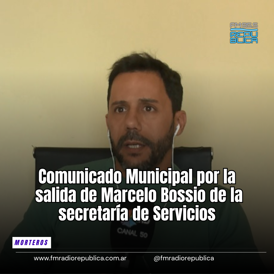 10/04/2026 - Ante la información que trascendió en las últimas horas sobre la salida de Marcelo Bossio de la Secretaría de Servicios Públicos, desde la Municipalidad de Morteros informamos que se trata de una situación que veníamos advirtiendo desde hace un tiempo, y también a partir de cuestiones personales que el propio funcionario ha planteado como también la necesidad de una reorganizacion del area. Queremos destacar y agradecer especialmente a Marcelo por el compromiso, la responsabilidad y el trabajo realizado al frente de un sector clave y de enorme complejidad para el funcionamiento diario de la ciudad.
