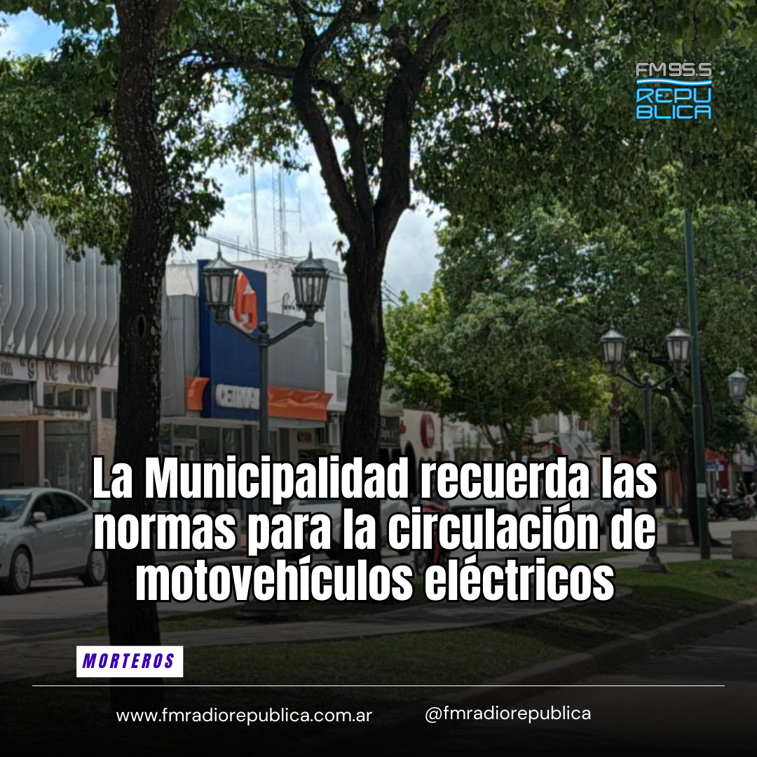 09/12/2025 - La Municipalidad de Morteros informa a la comunidad que continúa vigente la Ordenanza Municipal N.º 3191/2021, que establece las condiciones para la circulación de motovehículos eléctricos en la vía pública, en consonancia con la Ley Nacional de Tránsito Nº 24.449 y la Ley Provincial Nº 8.560. La normativa detalla los siguientes requisitos obligatorios para garantizar una circulación segura: