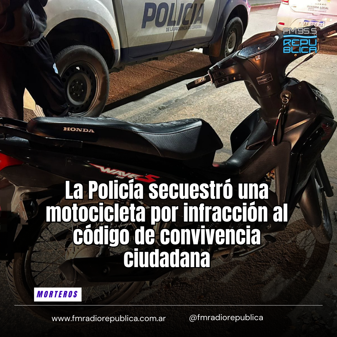 La Policía secuestró una motocicleta por infracción al código de convivencia ciudadana