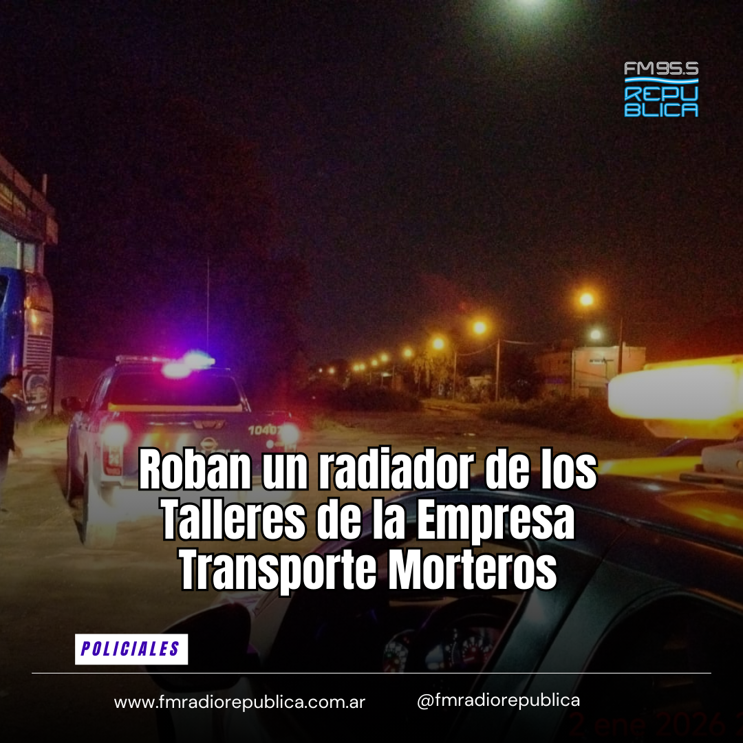 03/01/2026 - En la noche del viernes (22:54 hs) personal de seguridad advirtió sobre un robo en los Talleres de la Empresa Transporte Morteros. El encargado del Taller explicó que ingresaron por la parte trasera del edificio, advirtiendo la presencia de un sujeto que se llevaba el radiador de un colectivo. El personal de seguridad ciudadana procedió a la búsqueda del sospechoso por la zona con resultado negativo.