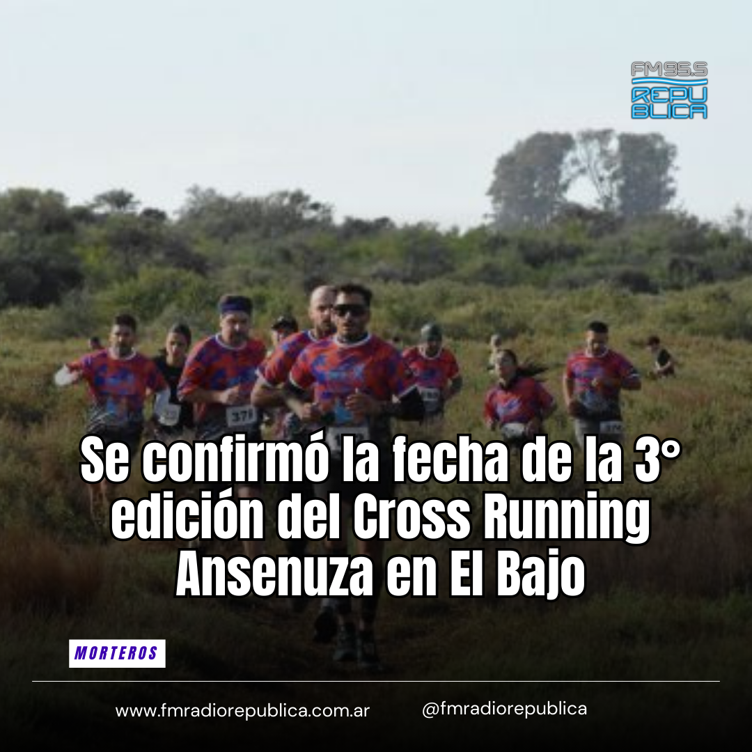 15/01/2026 - Tendrá lugar el domingo 14 de junio, nuevamente en el imponente escenario natural del Bajo de Morteros, dentro del área de influencia de la Reserva Provincial y el Parque Nacional Ansenuza La Municipalidad de Morteros confirmó la realización de la tercera edición del Cross Running Ansenuza, que tendrá lugar el domingo 14 de junio, nuevamente en el imponente escenario natural del Bajo de Morteros, dentro del área de influencia de la Reserva Provincial y el Parque Nacional Ansenuza.