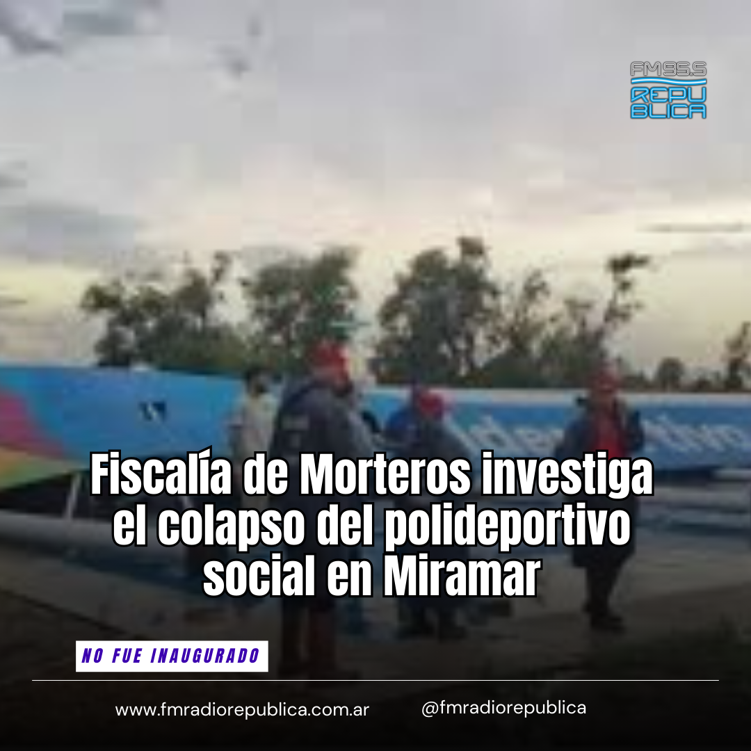02/12/2025 - El polideportivo social de Miramar colapsó en el mediodía del viernes, afortunadamente sin personas lesionadas debido a que la obra aun no había sido entregada. El Dr. Francisco Paygés, fiscal de instrucción de Morteros inició una investigación y el domingo junto al equipo de policía Judicial recorrido el lugar. “El viernes 28 de noviembre la provincia a través de la Procuración del Tesoro formuló denuncia relativa a las posibles irregularidades en la construcción del Polideportivo de Miramar”, dijo Payges marcando que “la particularidad es que se trataba de una obra no entregada ni inaugurada por lo tanto no había una entrega formal de la obra a la Provincia”.