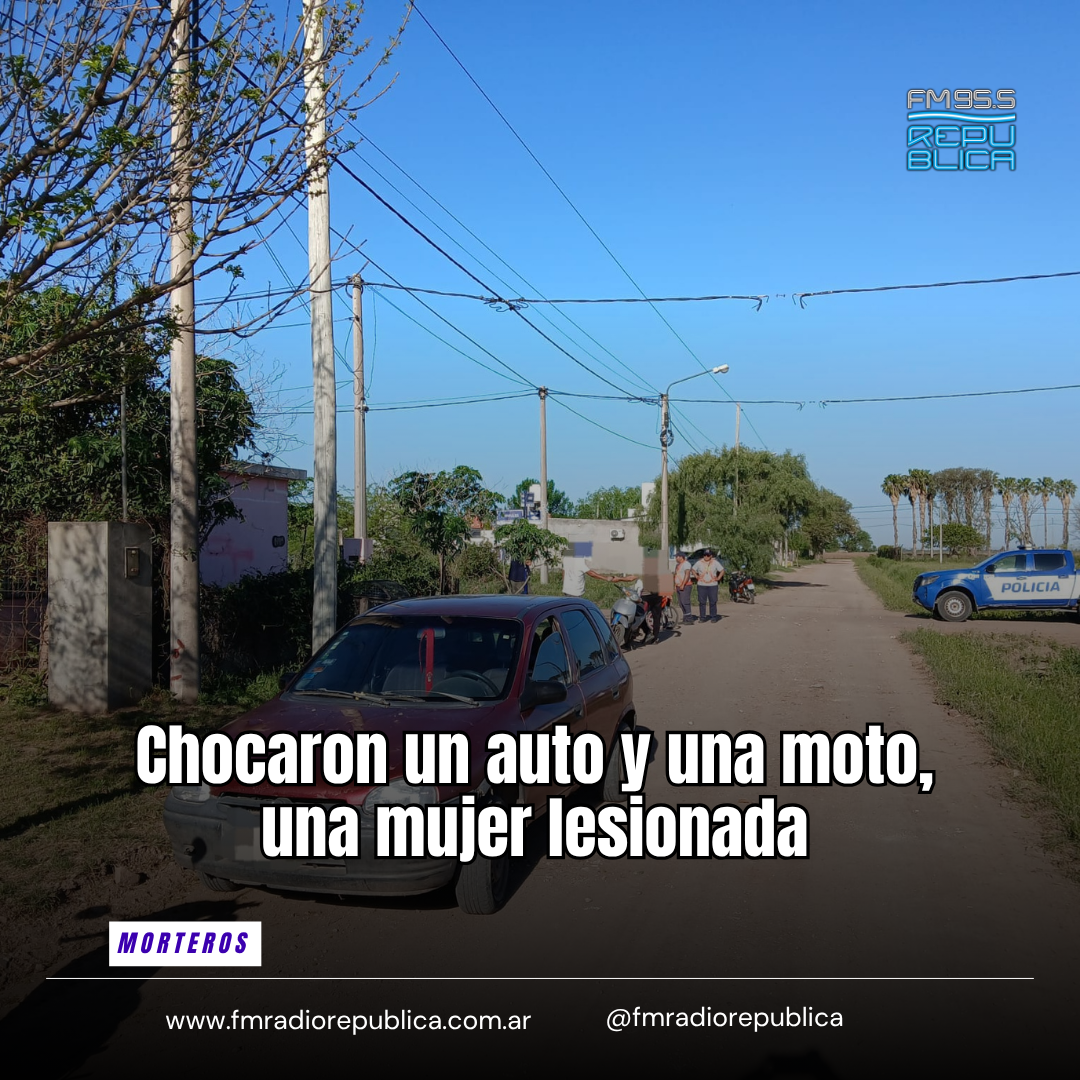 09/10/2025 - En la tarde del miércoles (18.00 hs), se produjo un accidente vehicular en la intersección de calles Alvear y Pringles. El siniestro, fue protagonizado por un automóvil Chevrolet Corsa, conducido por un hombre de 38 años de edad y una motocicleta Motomel Blitz guiada por una joven de 31 años de edad. A raíz del choque la conductora del rodado menor fue trasladada por el servicio de emergencias al Hospital Dr. Sauret donde le diagnosticaron escoriaciones y politraumatismo de cráneo Tomó intervención la Fiscalía de Instrucción de esta ciudad.