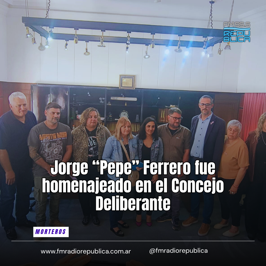 10/10/2025 - El pasado 17 de septiembre falleció Jorge “Pepe” Ferrero quien se desempeñara como concejal en el período 2007-2011 representado al partido de la UCR. El Concejo Deliberante declaró su más profundo reconocimiento a Jorge “Pepe” Ferrero. Valeria Gandino desde la bancada de JxM manifestó “Fue una persona que trabajó con compromiso por Morteros, defendía con pasión sus ideas”. En el recinto estuvieron presentes su esposa e hijos para recibir la declaración de reconocimiento por parte de los concejales y del intendente Sebastián Demarchi.