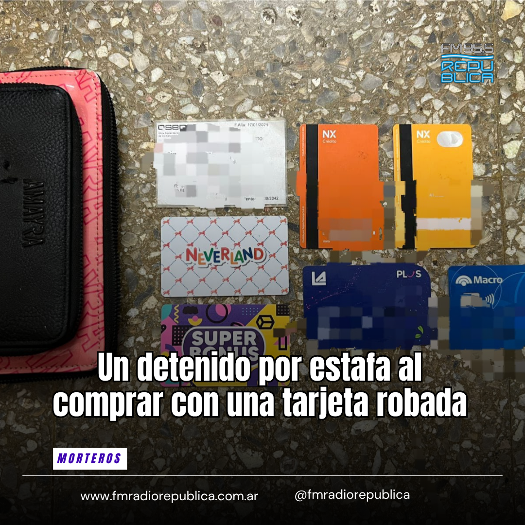 02/10/2025 - En la mañana de este jueves una joven de 20 años denunció en sede policial que momentos antes se realizaron compras en diferentes comercios de Morteros con su Tarjeta de Crédito, aportando datos del sospechoso. Inmediatamente se puso en conocimiento al personal de investigaciones, quienes realizaron relevamientos de cámaras de vigilancia y logrando la identificación del supuesto autor, un joven de 28 años que fue controlado en la vía pública por calle Rio Bamba.